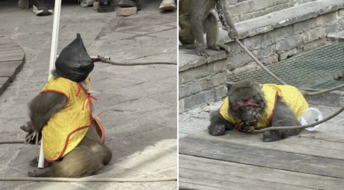 이 끔찍한 공연은 원숭이들이 처벌받듯 무릎을 꿇고, 머리에 검은 자루를 쓰며, 팔이 뒤로 묶인 채 하얀 막대기에 고정된 모습으로 공개되었습니다. 관광객들이 지켜보는 가운데, 공연자가 장난감 총을 발사하면 원숭이는 쓰러지고, 일부 사진에서는 얼굴에 피가 흐르는 원숭이의 모습도 포착됐습니다. 이 무자비한 퍼포먼스는 ‘그냥 연출이다’라는 변명으로 일단락되는 게 아니라, 결국 동물 학대 문제로 번져 논란이 확산되고 있습니다.