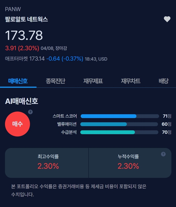 이번에 처음으로 감지된 매수신호는 많은 투자자에게 ‘긍정적 신호’로 다가옵니다. 특히, AI와 클라우드 보안을 중점으로 하는 기업의 성장세는 앞으로도 지속될 가능성이 높기 때문에, 팔로알토 네트웍스는 앞으로의 시장 움직임을 예측하는 데 중요한 지표가 될 수 있습니다. 아직 관심이 없다면, MK시그널 앱을 통해 실시간 매매신호를 확인하고 투자 전략에 반영하는 것도 좋은 방법입니다.