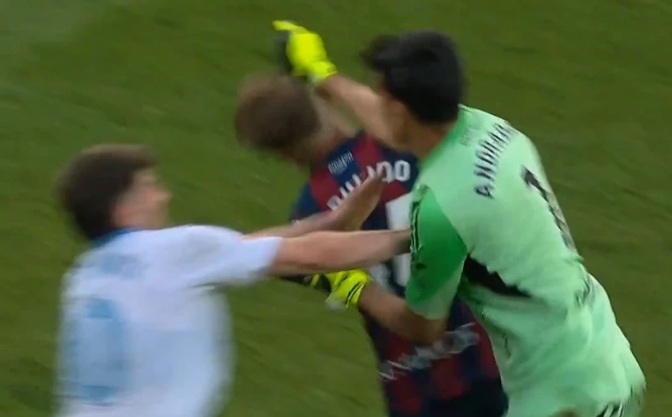 경기는 스페인 2부 리그의 한 경기에서 발생했으며, 사라고사의 아르헨티나 출신 골키퍼 에스테반 안드라다는 강등권 탈출을 위해 필사적인 승부에 몰두하던 도중, 짜증과 분노를 감추지 못하고 상대팀 골키퍼인 우에스카의 다니 히메네스에게 달려가 얼굴을 가격했고, 이 충돌은 곧 전 선수들의 집단 난투극으로 번졌습니다. 당사자인 골키퍼들뿐만 아니라, 양팀 선수단 전체가 뒤엉키며 경기장 분위기는 순식간에 폭력 사태로 변했고, 결국 양 팀 골키퍼 두 명이 한꺼번에 퇴장당하는 엄청난 혼란을 야기했습니다.